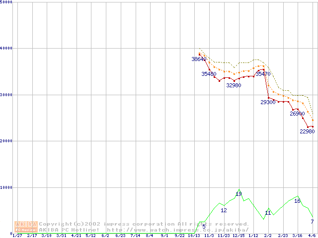 Athlon MP 1800+ (1.53GHz) バルクの価格推移