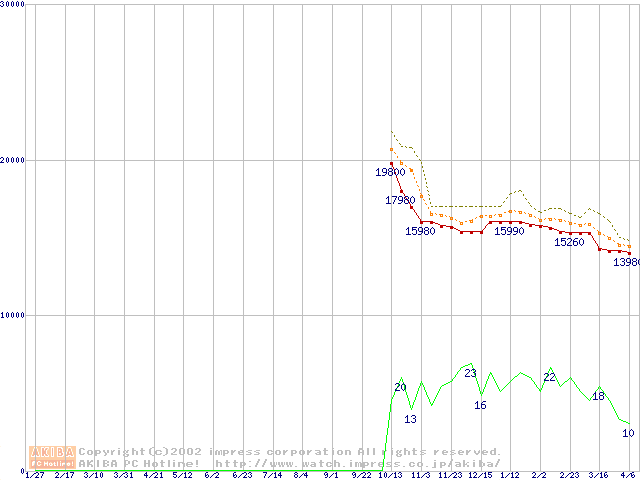 Socket A (Palomino,OPGA,FSB 266MHz,L2 256KB)の最安値推移