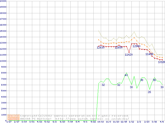 Celeron 1.20GHz FC-PGA2 リテールパッケージの価格推移