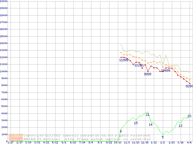 Duron 1.1GHz リテールパッケージの価格推移