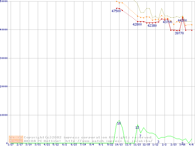 Travelstar 48GH (12.5mm,5400rpm,UltraATA/100,2MB,流体軸受)の最安値推移