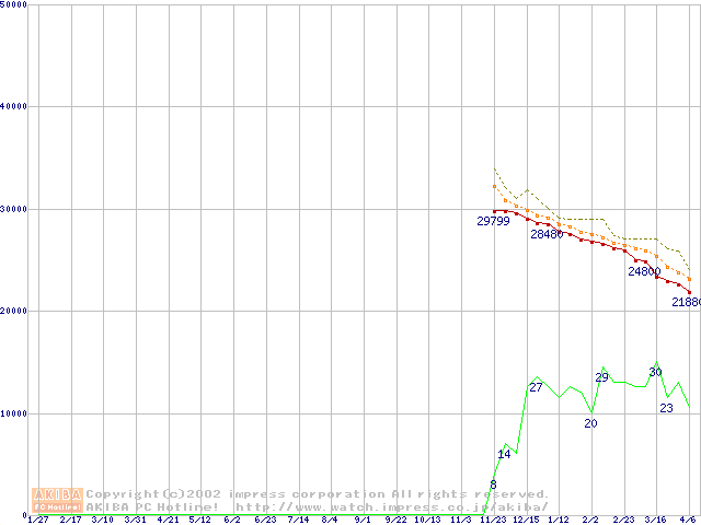 DiamondMax D540X (5400rpm,UltraATA/133,40GB/Platter)の最安値推移