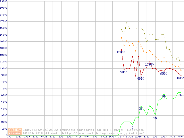 メモリ主要製品の最安値推移