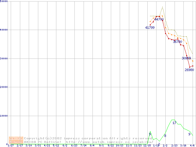 Socket A (Palomino,OPGA,FSB 266MHz,L2 256KB)の最安値推移