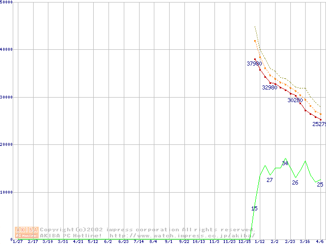 Deskstar 120GXP (7200rpm,UltraATA/100 2MB)の最安値推移