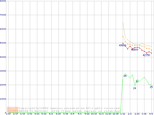 Pentium 4 2A GHz リテールパッケージの価格推移