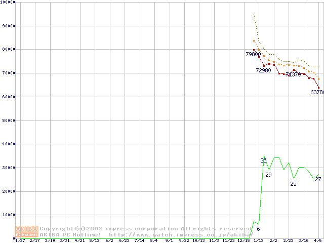 Pentium 4 2.20GHz リテールパッケージの価格推移