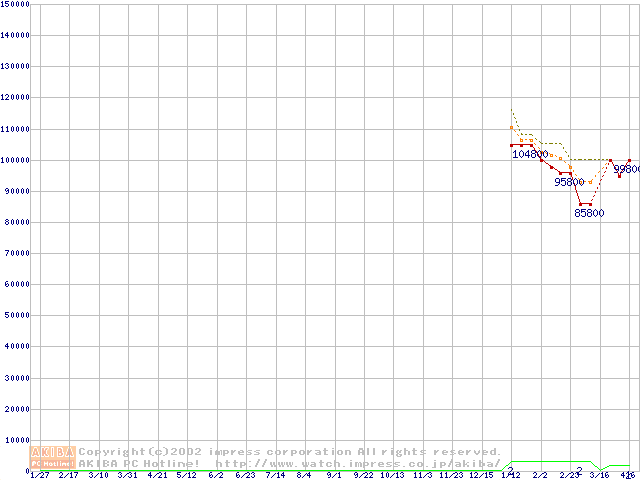 Socket 603 (micro-PGA,L2 512KB,Hyper-Threading,Prestonia)の最安値推移