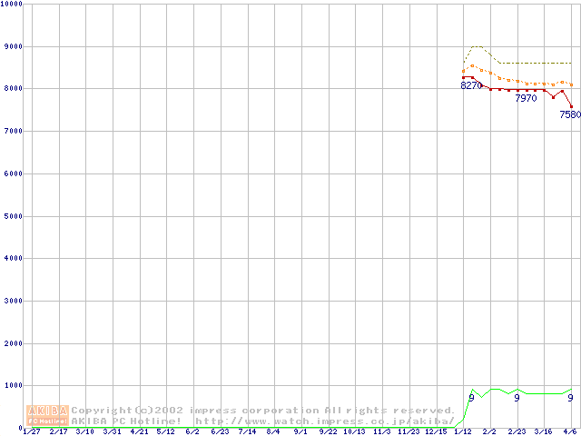 Socket 370 (PGA,FSB 100MHz,L2 64KB)の最安値推移