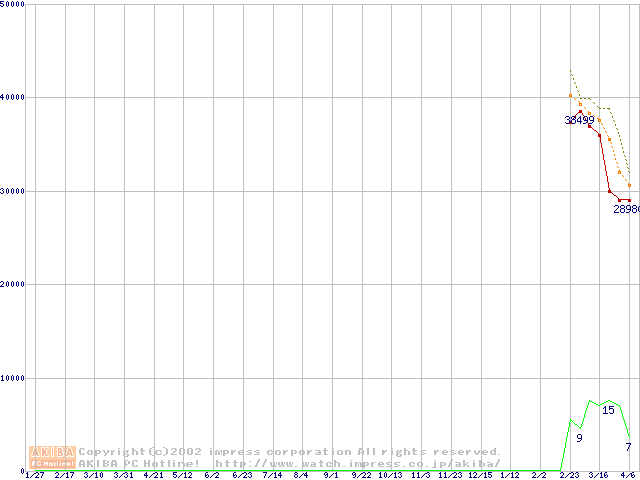Socket A (Palomino,OPGA,FSB 266MHz,L2 256KB)の最安値推移