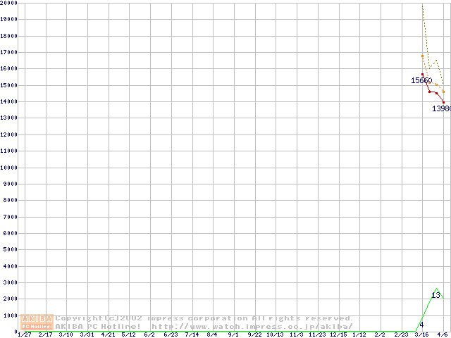 MHRシリーズ (9.5mm,4200rpm,UltraATA/100,2MB,20GB/プラッタ,流体軸受)の最安値推移