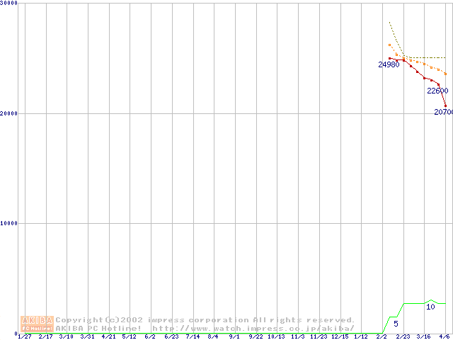 MHRシリーズ (9.5mm,4200rpm,UltraATA/100,2MB,20GB/プラッタ,流体軸受)の最安値推移