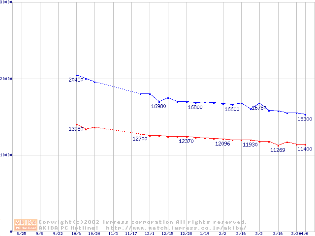 | [↓次グラフ]: | Travelstar 15GN (9.5mm,4200rpm,UltraATA/100,512KB,流体軸受)の最安値推移 |