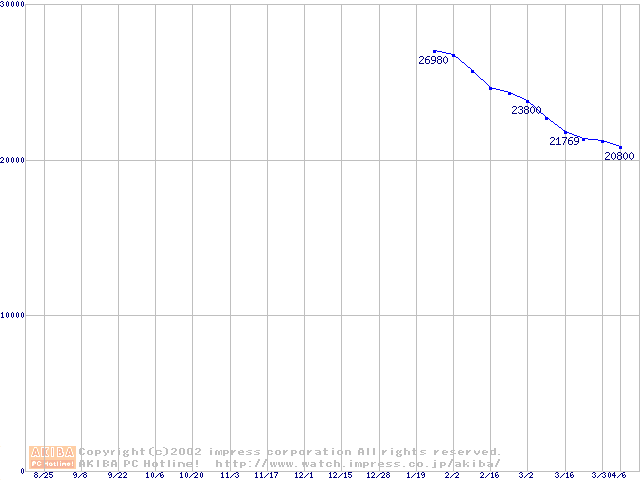 | [↑前グラフ]: | Travelstar 15GN (9.5mm,4200rpm,UltraATA/100,512KB,流体軸受)の最安値推移 |