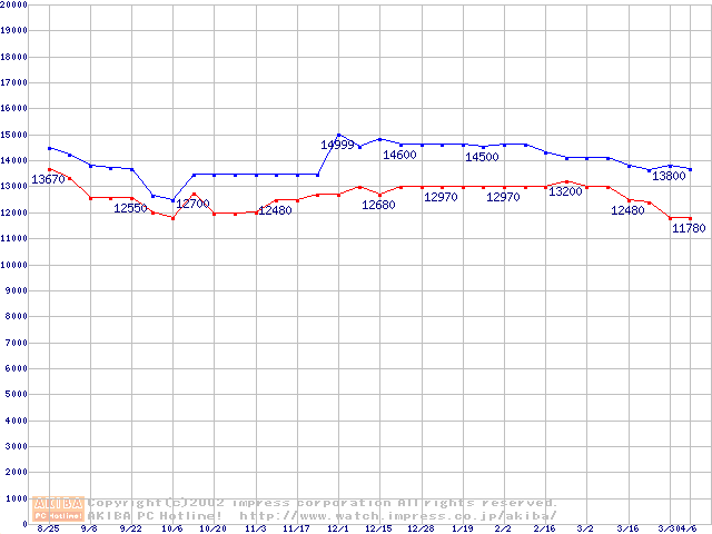| [↓次グラフ]: | Socket A (Thunderbird,PGA,FSB 200MHz,L2 256KB)の最安値推移 |