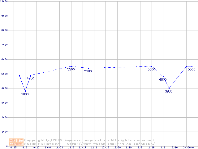 | Socket 370 (FC-PGA,FSB 66MHz,L2 128KB)の最安値推移 |