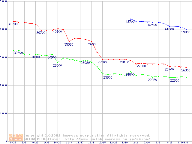 [↑前グラフ]: | Socket 603 (micro-PGA,L2 256KB,Foster)の最安値推移 |