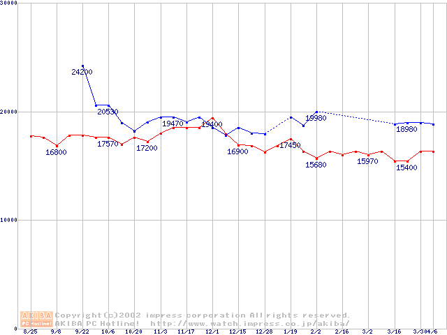 | [↓次グラフ]: | Slot 1 (SECC2,FSB 133MHz,L2 256KB)の最安値推移 |