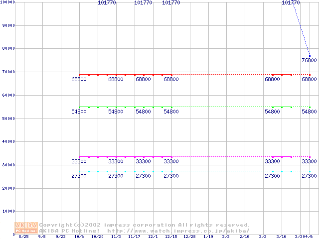 | [↑前グラフ]: | Slot 1 (SECC2,FSB 100MHz,L2 256KB)の最安値推移 |