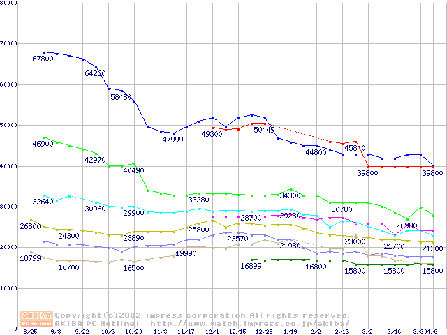 | [↑前グラフ]: | Socket 478 (micro-PGA,L2 512KB,Northwood)の最安値推移 |