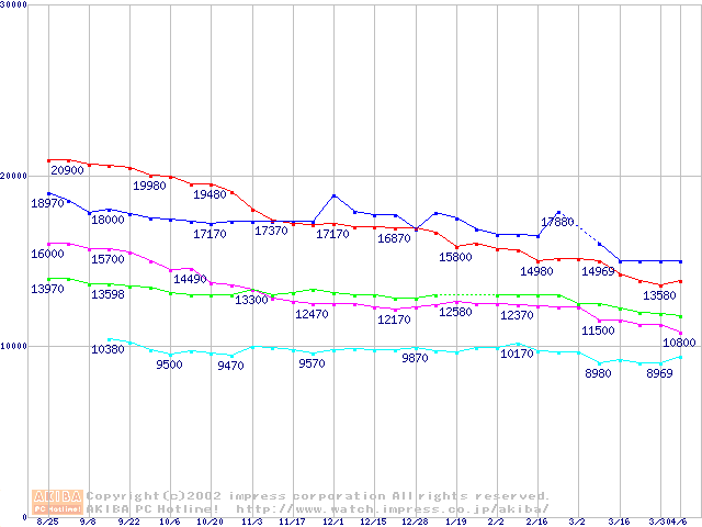 | [↓次グラフ]: | 541DX (5400rpm,UltraATA/100)の最安値推移 |