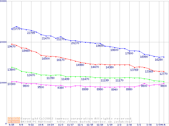 | [↑前グラフ]: | 541DX (5400rpm,UltraATA/100)の最安値推移 |