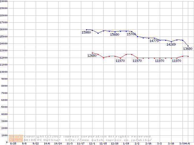 | [↑前グラフ]: | MPG3xxxAT (5400rpm,UltraATA/100)の最安値推移 |