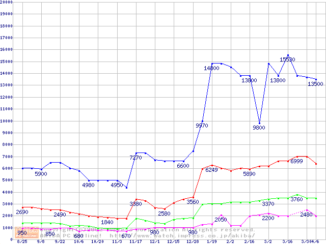 | ※製品名をクリックすると個別のグラフを表示します ※点線部は販売店が確認できなかった、または調査データがないことを示します | |