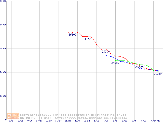 | [↓次グラフ]: | 2.5インチHDD主要製品(最安値3万円以上)の最安値推移 |