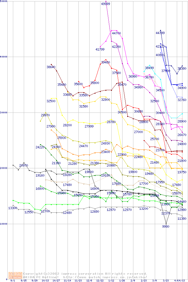 Socket A・FSB 200MHzの最安値推移
