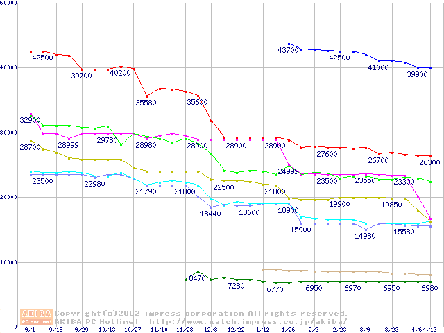 Socket 423・FSB 400MHzの最安値推移