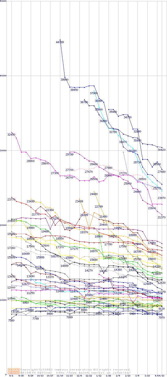 HDD主要製品の最安値推移