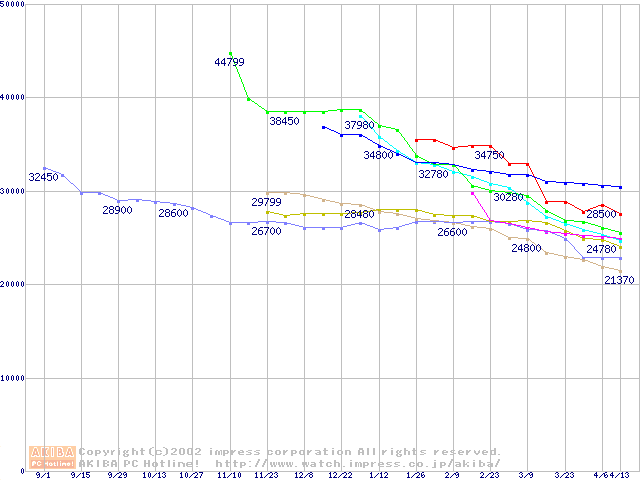 HDD主要製品の最安値推移