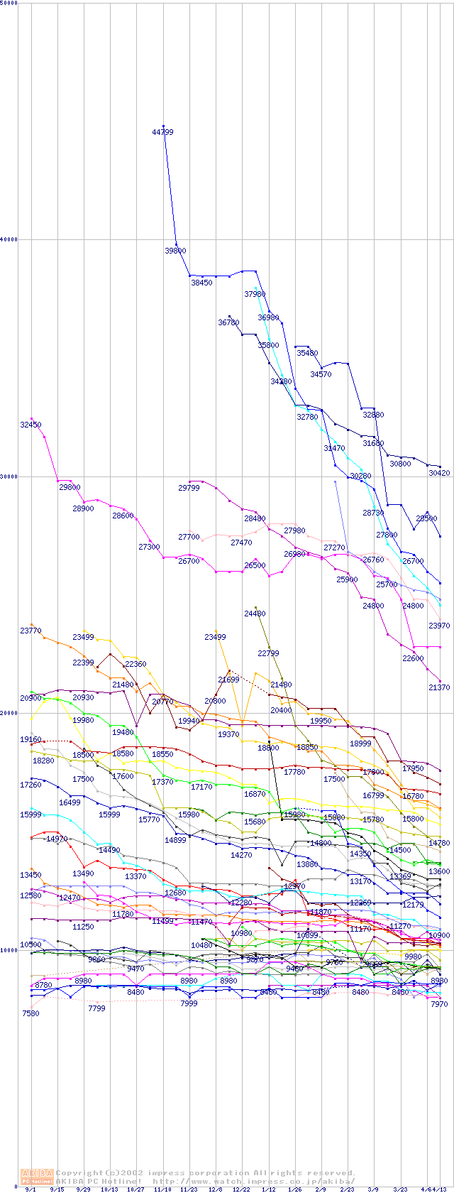 HDD 10GB~20GB未満(5400rpmクラス)の最安値推移