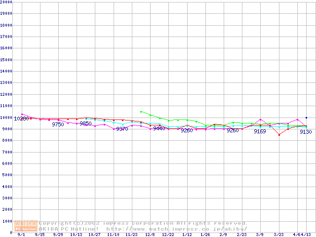 | [↑前グラフ]: | HDD 100GB以上(5400rpmクラス)の最安値推移 |