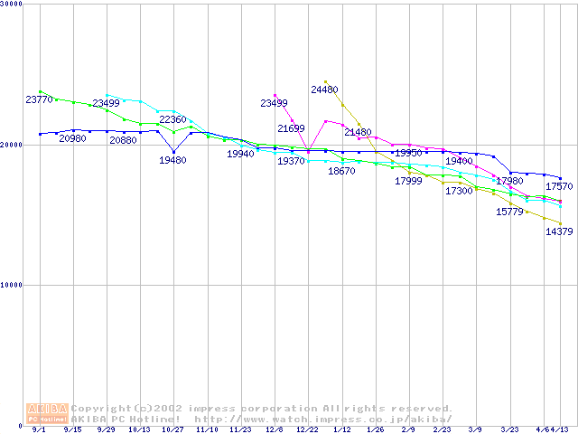 | [↓次グラフ]: | HDD 100GB以上(7200rpmクラス)の最安値推移 |
