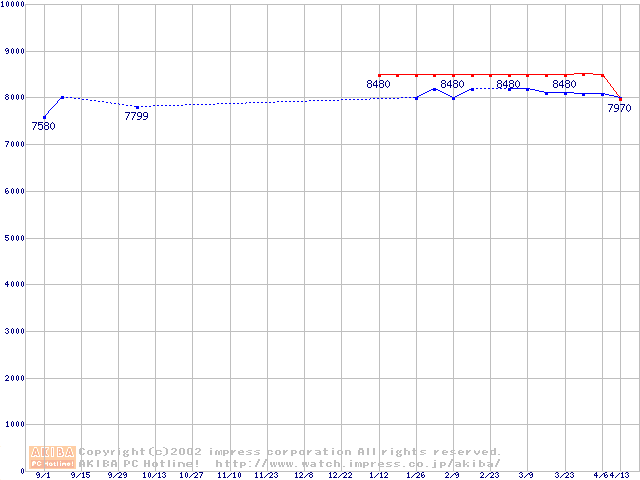 HDD 10GB~20GB未満(5400rpmクラス)の最安値推移
