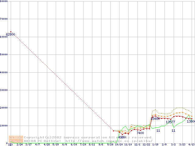 PC133 SDRAM DIMM CasLatency=2の最安値推移