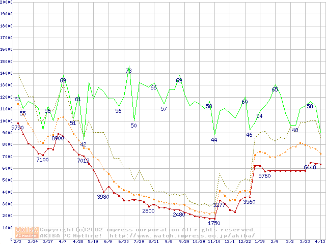 PC133 SDRAM DIMM CasLatency=3の最安値推移