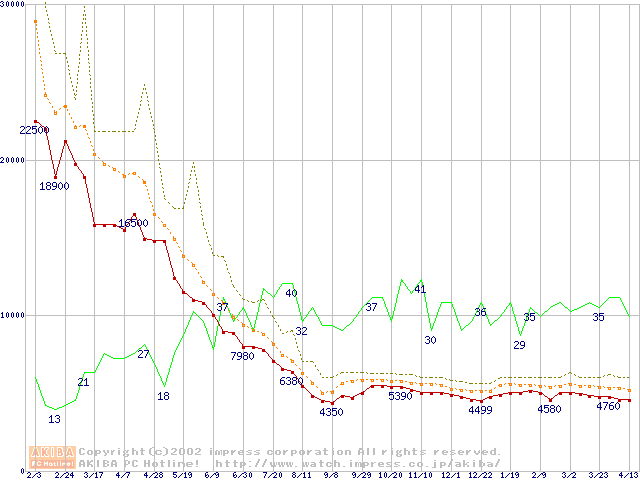 PC800 DRDRAM RIMMの最安値推移