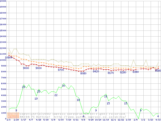 MPG3xxxAT (5400rpm,UltraATA/100)の最安値推移