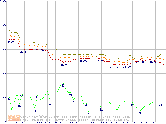 Pentium III 1GHz SECC2 リテールパッケージの価格推移