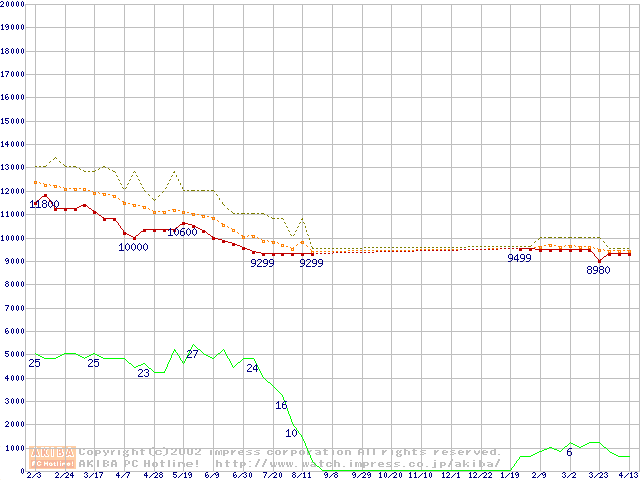 U5 (5400rpm,UltraATA/100 512KB)の最安値推移