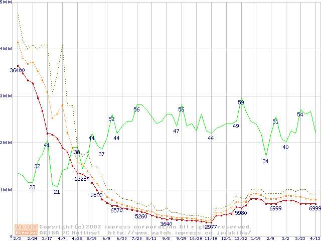 PC2100(DDR266) DDR SDRAM DIMM(CL 2.5)の最安値推移