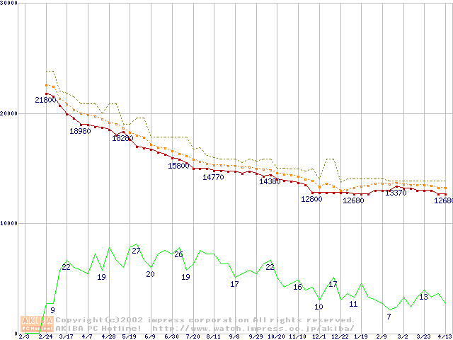 WD Caviar (5400rpm,UltraATA/100)の最安値推移