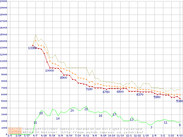Socket A (Spitfire,PGA,FSB 200MHz,L2 64KB)の最安値推移