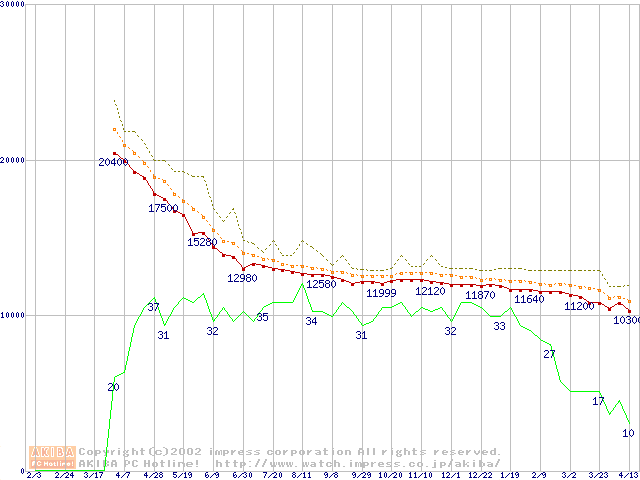 Deskstar 60GXP (7200rpm,UltraATA/100 2MB)の最安値推移