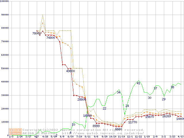 メモリ主要製品(最安値1万円以上)の最安値推移