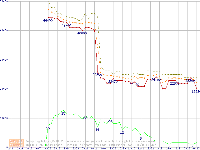Pentium 4 1.70GHz(423pin)リテールパッケージ(RIMMなし)の価格推移