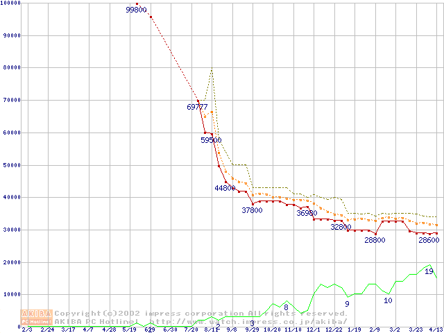 PC800 DRDRAM RIMMの最安値推移